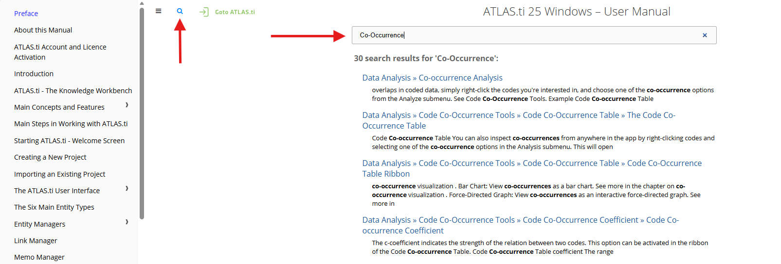 You can access our Manuals and Documents at https://atlasti.com/manuals-and-documents, where we provide manuals for the latest version of ATLAS.ti in both English and Spanish. You can read them online or download them for offline use, and you will also find manuals for earlier versions such as ATLAS.ti 22 and ATLAS.ti 9. When viewing a manual in your browser, you can quickly search for topics by clicking the magnifying glass icon or pressing the shortcut key “S” and entering a keyword. The manuals include screenshots, detailed explanations, and internal links to help you easily navigate between related sections.
