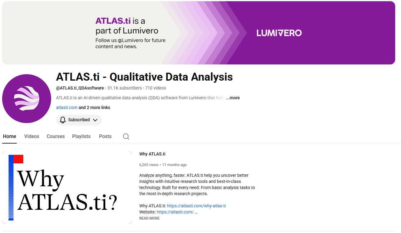 - Alternatively, you can watch the same videos on our official YouTube channel: https://www.youtube.com/@ATLAS.ti_QDAsoftware.