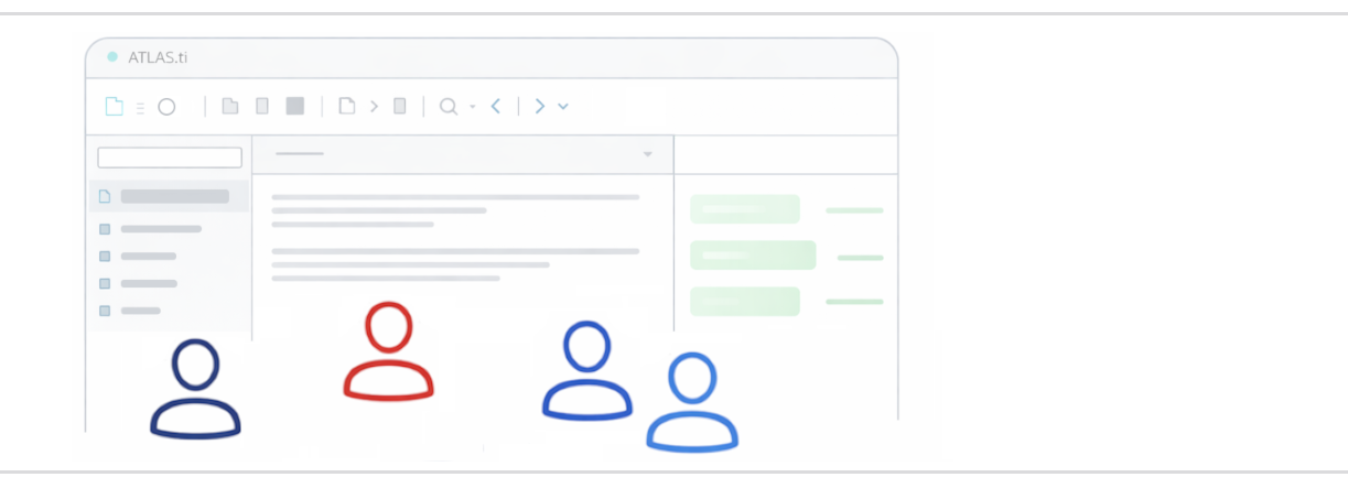 Both ATLAS.ti Web and ATLAS.ti Desktop (Windows/Mac) can be used to analyze qualitative data collaboratively. This is possible with any license. No special add-ons or features have to be purchased, and no special infrastructure is required.