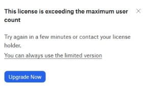 If you are an invitee into another user, then the message may indicate that there is another user working with ATLAS.ti on this license. To make sure that the user is logged out, you can recommend them to click on "Free up my seats" from my.atlasti.com. This will quickly release the user's seat and allow you to join in right away