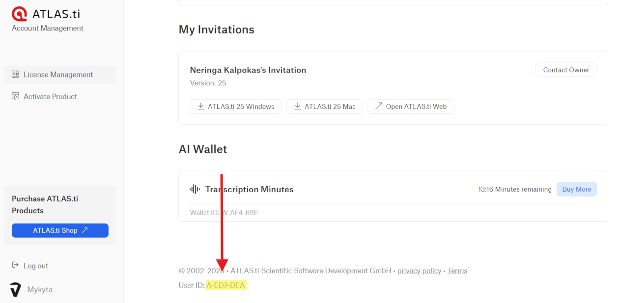 You can find your User ID at the bottom of your My ATLAS.ti account page. See the screenshot below for reference, which shows exactly where the ID is located.