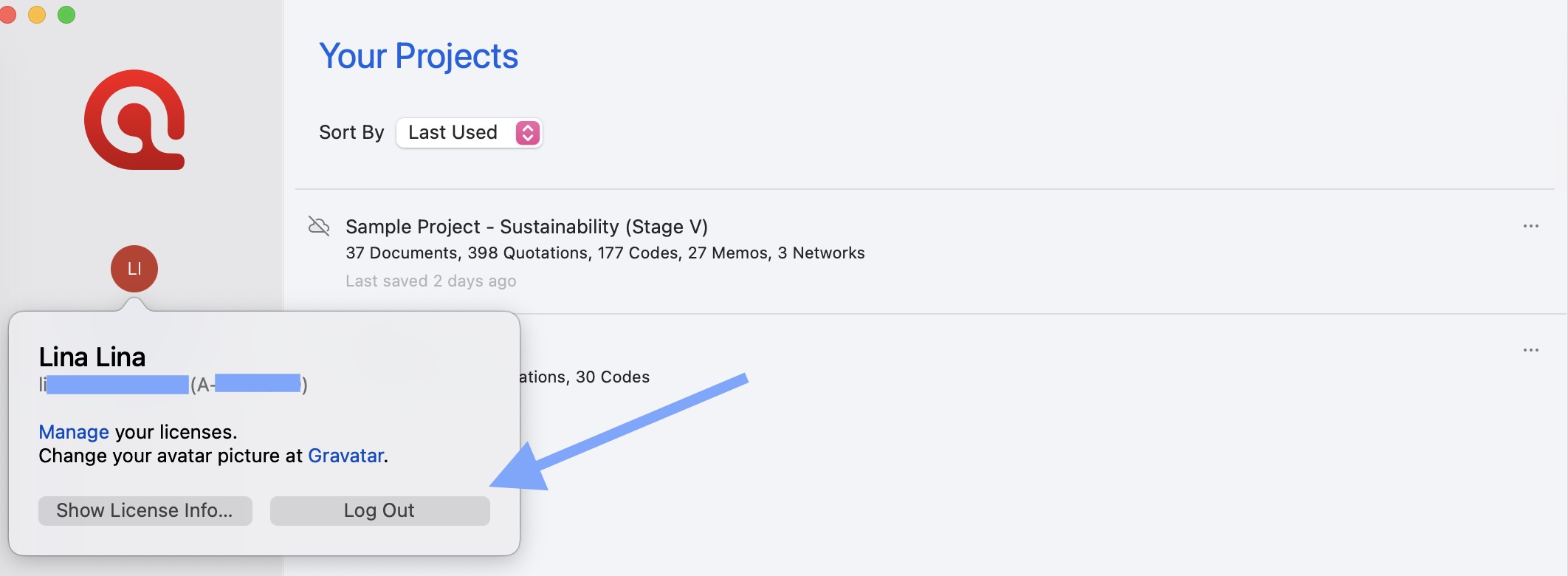 How do I logout of the desktop application? How do I logout of the desktop application? On the welcome/ start screen, click on the avatar icon and click on Log out or Log out and Restart.