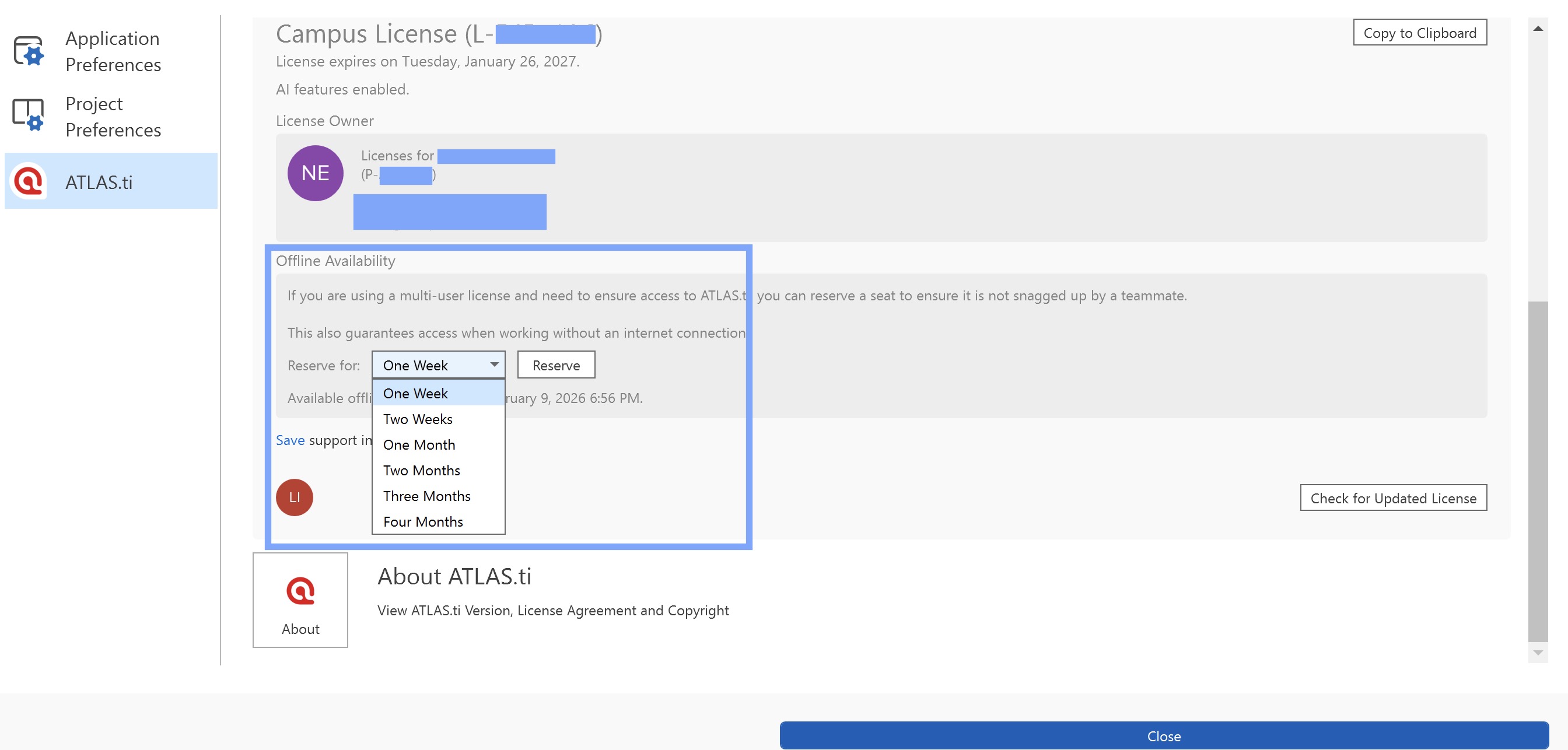 I am working on my dissertation or on some other very important work. How do I ensure and reserve a license from my organization, so I don’t end up in a situation where all licenses are in use an hour before I must finish my work?