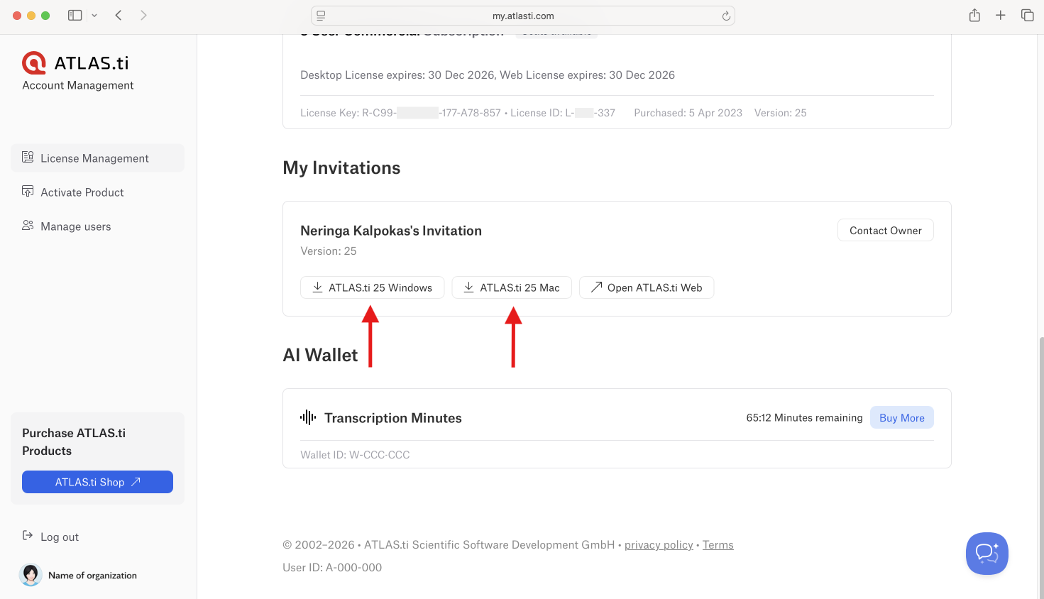 ATLAS.ti licenses are not tied to a single computer, so you can install the desktop software on multiple devices if needed. For example, you might install ATLAS.ti on your office computer and on your laptop. Latest installation files for ATLAS.ti (Windows/Mac) are available at my.atlasti.com