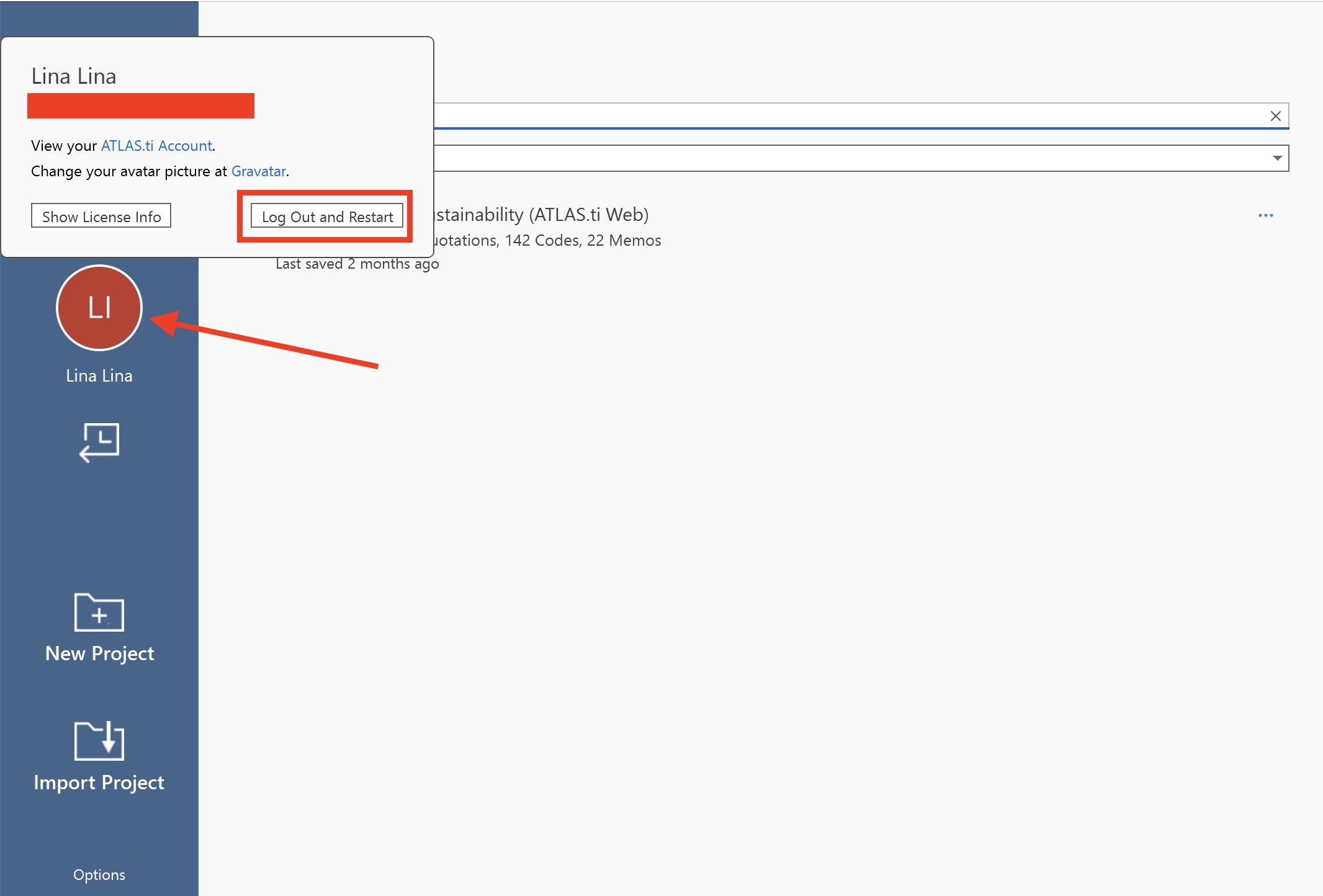 Step 2 – Log out from your current ATLAS.ti