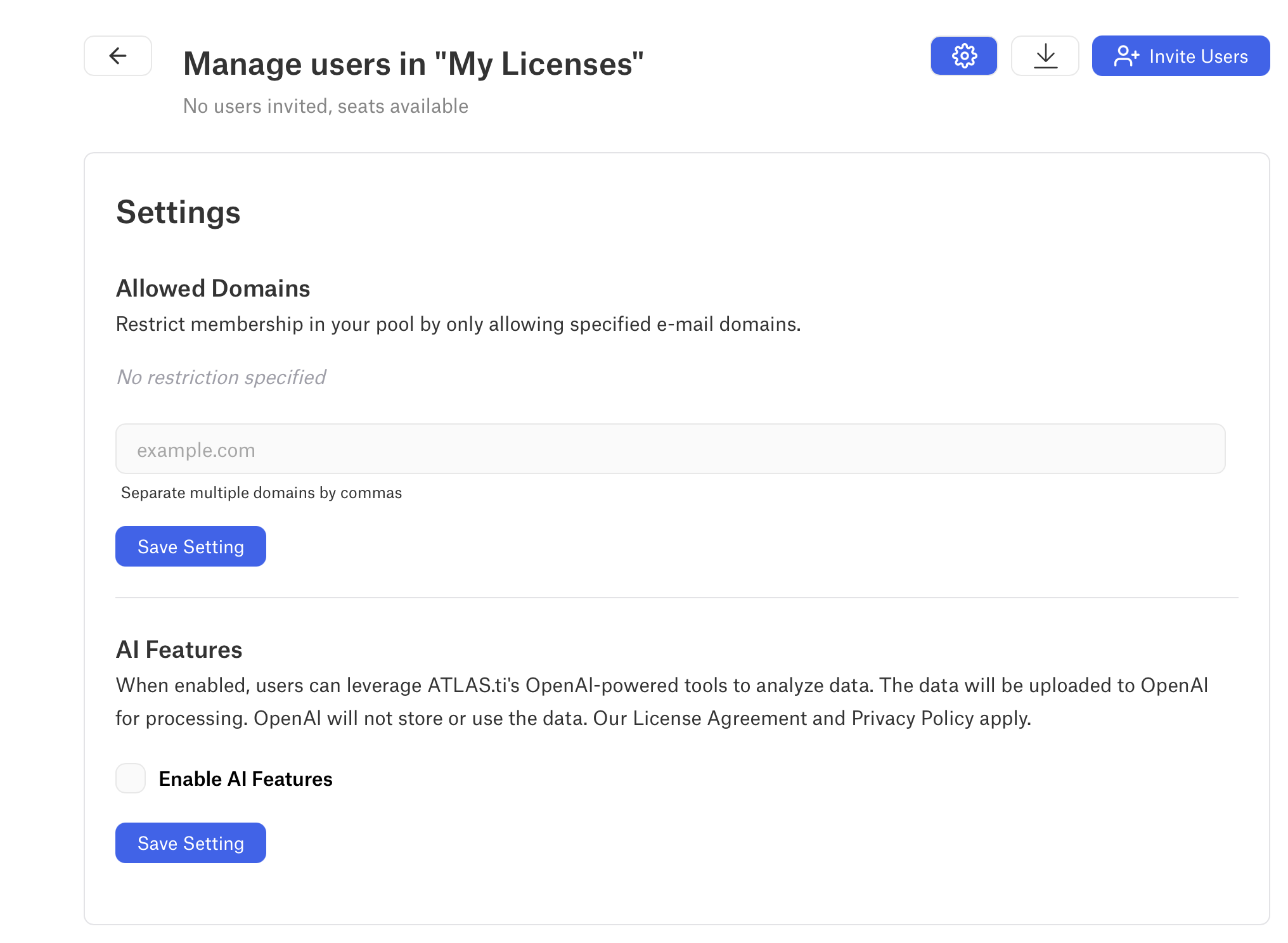 - Restrict access by domain, allowing only users with specific email domains (for example, your organization or university domain) to join the license