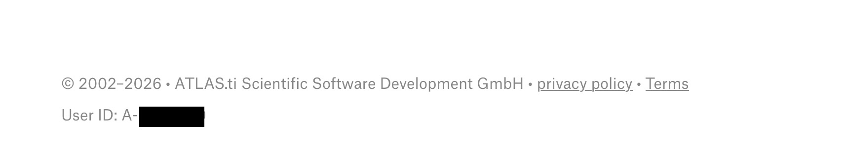 At the bottom of the page, you can find your ATLAS.ti User ID.