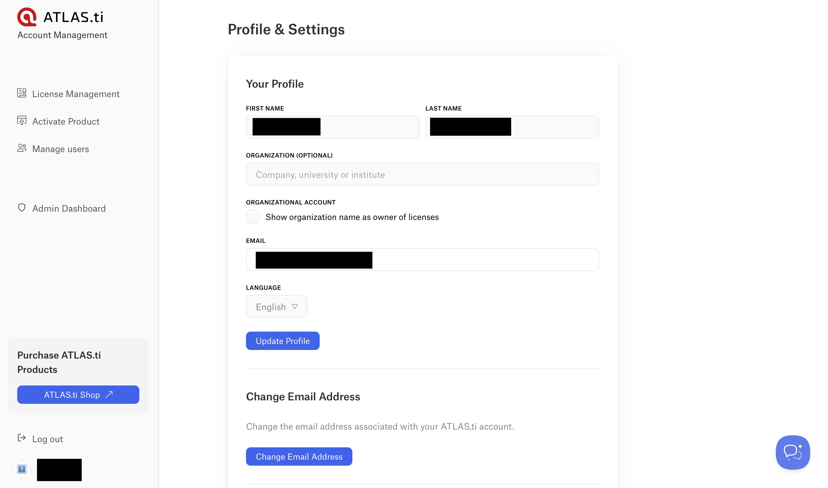 In the Profile & Settings section, you can view and manage basic information associated with your ATLAS.ti account.