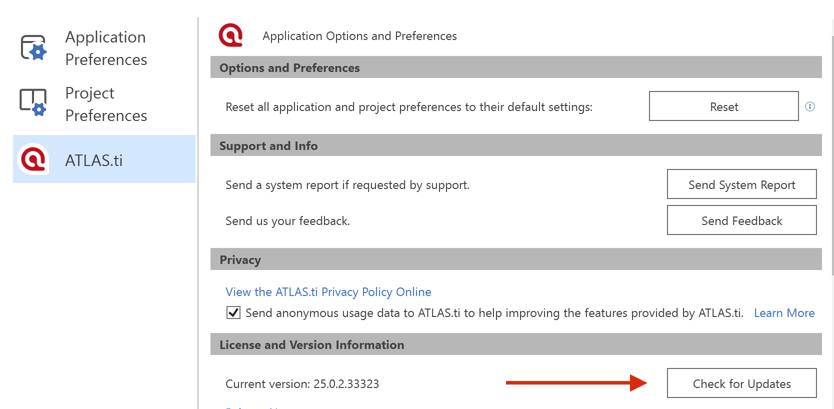 - ATLAS.ti > Check for Updates