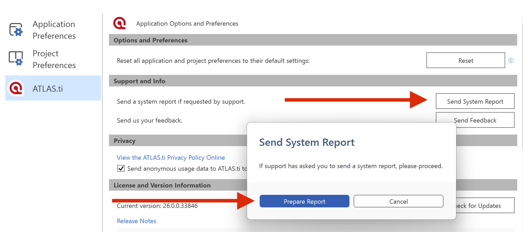 - Contact ATLAS.ti Support if the software crashes, freezes, shows errors, or behaves unexpectedly.