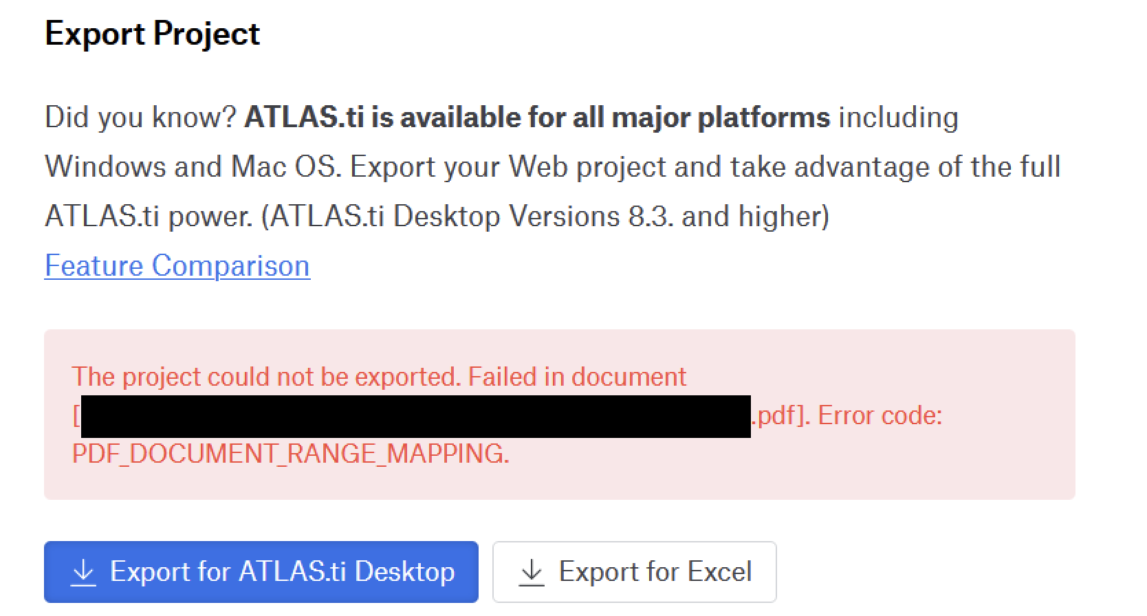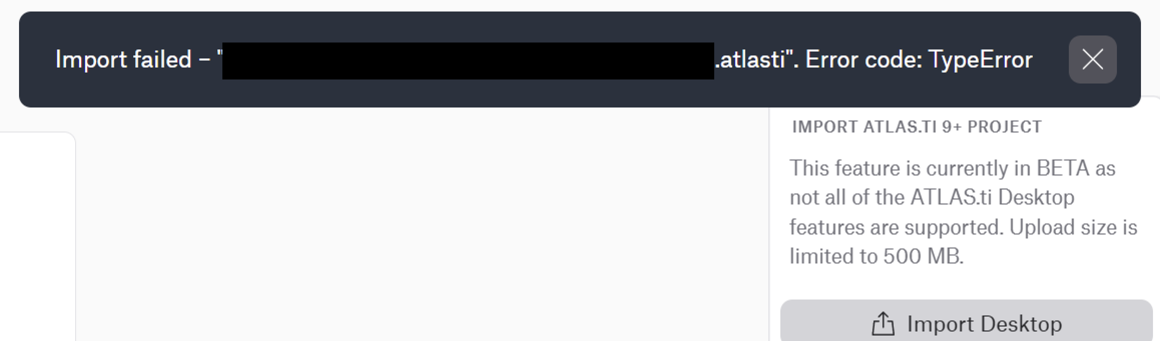 This article is for users working in ATLAS.ti Web who encounter errors when importing, exporting, downloading, or loading projects. It is useful if you need quick troubleshooting steps for common error messages or performance issues.