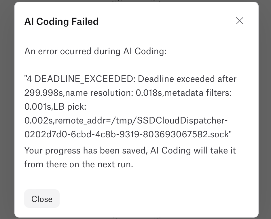 AI Coding failed: DEADLINE_EXCEEDED (4)